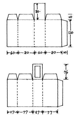@ 黒色厚紙を右図のように切ってのりづけし,外箱内箱を作る。