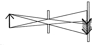 光は直進するので,被写体からでた光はピンホールを通ってスクリーンに当たり像を作り出す。理論上,スクリーンをどの位置においても,像の大きさは変わるがピントはあう。