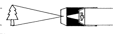 C 内箱を外箱に差し込んで,のぞけば,前方のものが逆さまに見える。