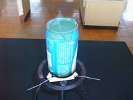 穴をふさいだ後、机上に放置してもよいが、この場合には、缶は500ml以上の大きなものの方がうまくいく。
