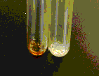 (3) 次にPVC、PVDCを呈色反応で識別するために、試料少量を試験管に取り、モルホリン少量を加える。しばらくすると、PVCは変化しないが、PVDCは褐色を呈する。