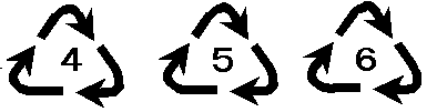 プラスチックの中で、生産量が多いのは、ポリエチレン(以下PEと略し、そのうち高密度ポリエチレンをHDPE、低密度ポリエチレンをLDPEと略す)、ポリプロピレン(PP)、ポリ塩化ビニル(PVC)、ポリスチレン(PS)、ペット樹脂(PET)である。これらの熱可塑性樹脂は日常的に比較的多く見かけるプラスチックで、SPIコード(図1)が付けられているものもある。これら6種類のプラスチックの簡単な性質とその見分け方を知る。