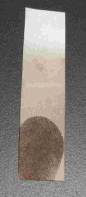 | (2) | 紙片の一端に指先をしっかりと押しつける。このとき指先に脂肪分が多くついているとはっきりした指紋が採れるので、押しつける前に額に指を触れさせるとよい。 | ||