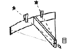 | 定規の目盛り5cmおきに、マッチ棒をセロハンテープで止めておくと、暗いところでもおよその角度を目分量で測定できる。 | ![]() |
