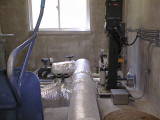 ポンプ室の中側です。川掃除用の一輪車、パイプには凍結防止用のものがまいてあります。