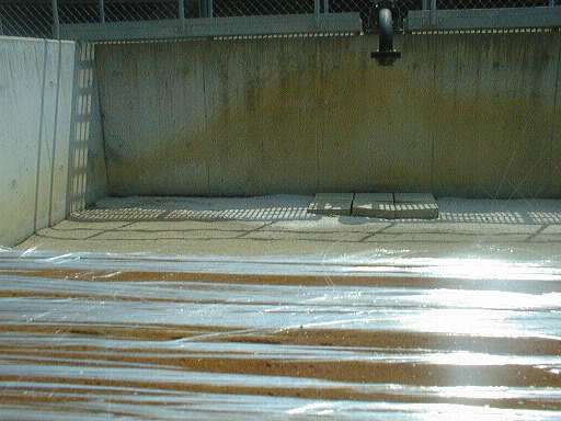 浄水場の中です。薬品でゴミを取り除いて、うわずみだけをとっていきます。