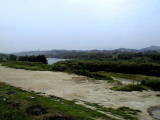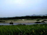 川の流れがゆるやかで、砂がたくさんつもっています。