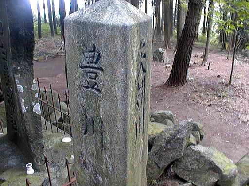 白ひげ神社には分水嶺(ぶんすいれい)を記念した石碑(せきひ)があります。