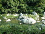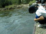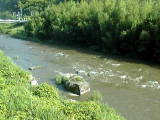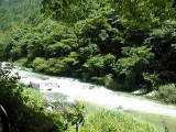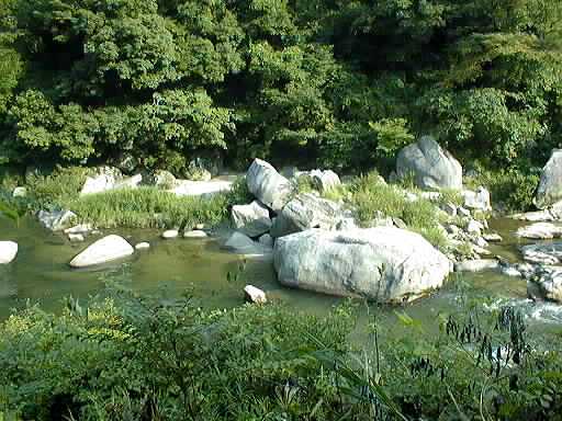 足助町と豊田市の境付近の巴川です。川のかたむきが急で川の流れが速く、岩がごろごろしています。