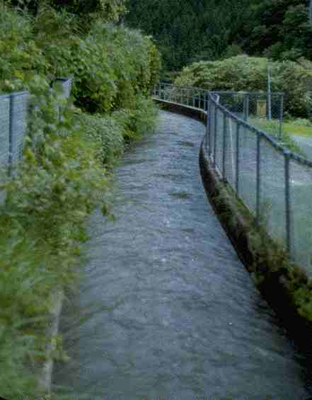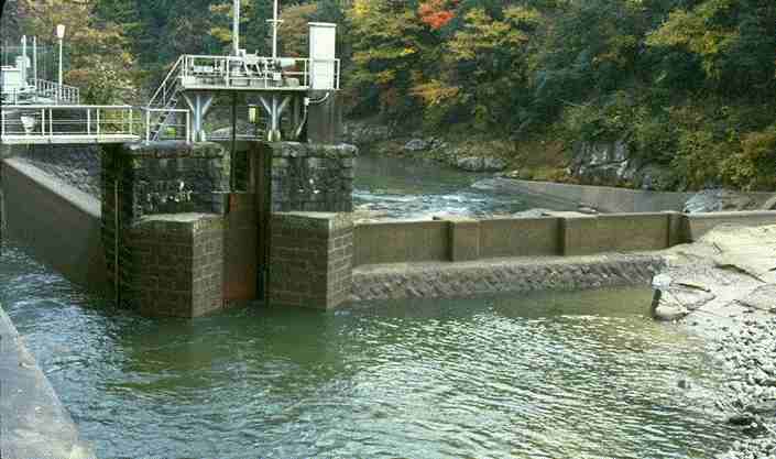 則定で取水された水は導水路を通って豊田の白瀬水力発電所へ送られます。左の写真は取水用えんていです。