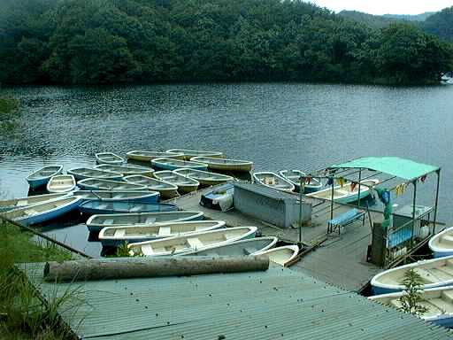 ボートがあったり、湖畔にはキャンプ場やます釣り場、売店、飲食店など観光施設があります。