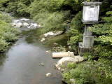 足助町岩神付近の巴川です。護岸工事がされています。