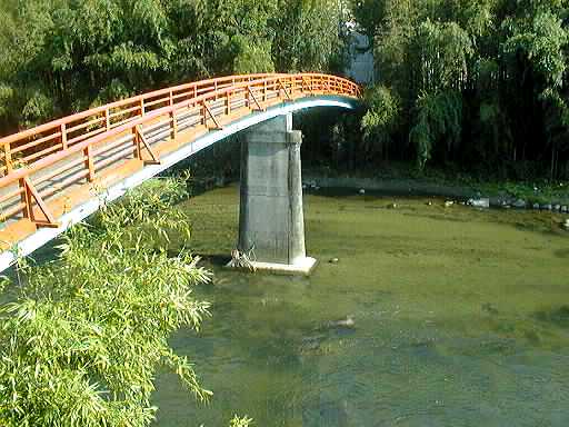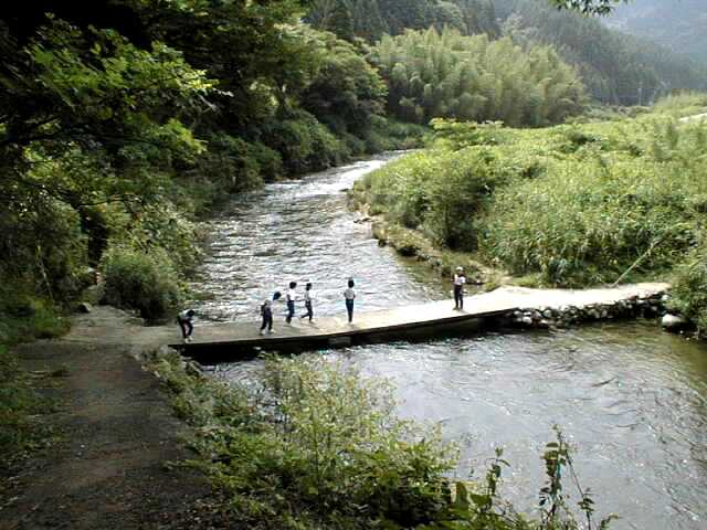 川の水量が増えると橋が川の中に沈んでしまう沈下橋です。