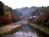 足助町香嵐渓です。秋の紅葉がたいへん有名です。秋にはたくさん観光客が集まります。