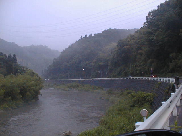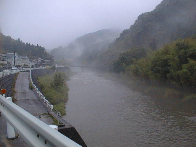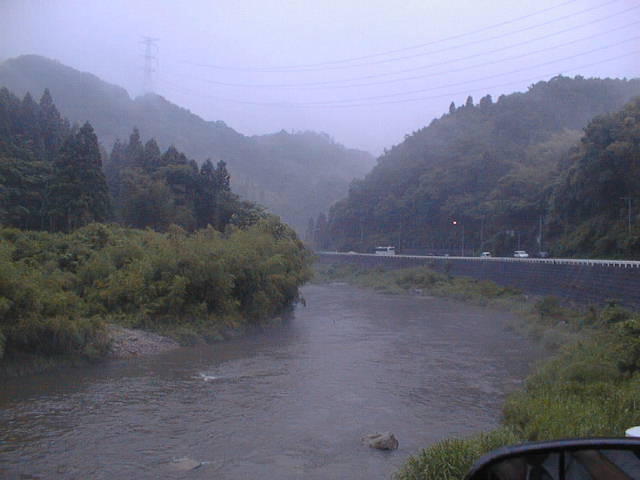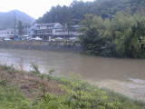 足助町大島付近の巴川です。天気は雨天です。