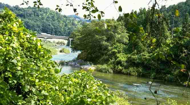 足助町野林の小原橋付近の巴川です。昔はこの橋の上から飛び込んで遊んだそうです。