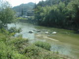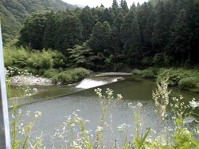 足助町追分付近の巴川です。アユのシーズンになるとここにヤナ場が作られます。川底の様子が分かりますか。