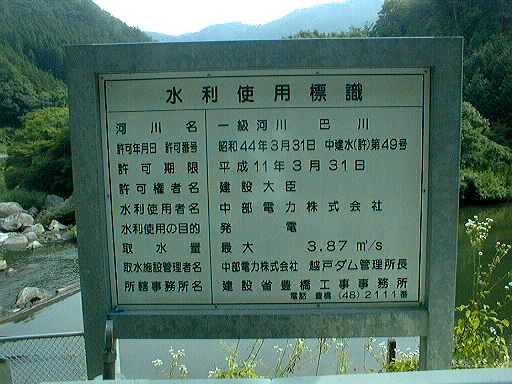 ここで取水された水は盛岡水力発電所へおくられます。えんていのところには、水利権を示す看板があります。