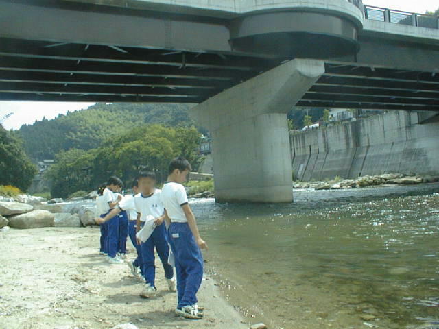 川の水量が少なくて流れがおそいところでは写真のように砂がたまっています(たいせきしています)。