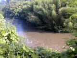 豊田市大滝楼(おおたきろう)付近の巴川です。川が合流しています。巴川にはたくさんの小さな川が合流しています。