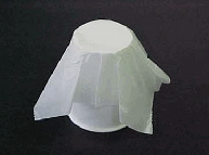 A 紙コップを伏せた上に、コップに接する側が表になるように、クッキングシートをかぶせる(写真2左)。